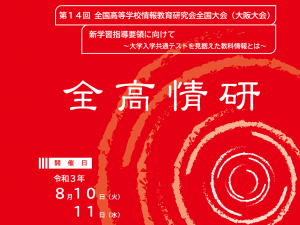 2021年8月10日(火)・11日(水)にオンラインで第14回全国高等学校情報教育研究会全国大会(大阪大会)を実施しました。